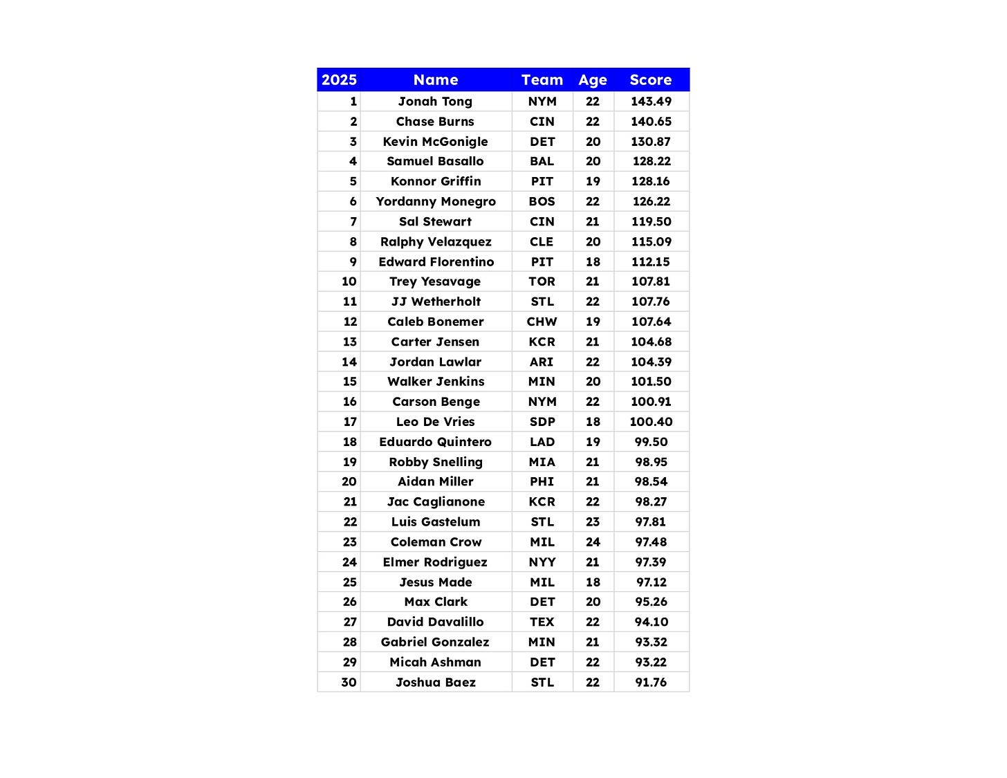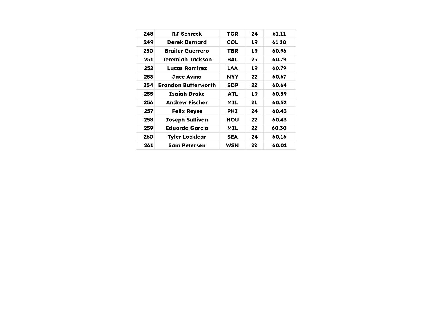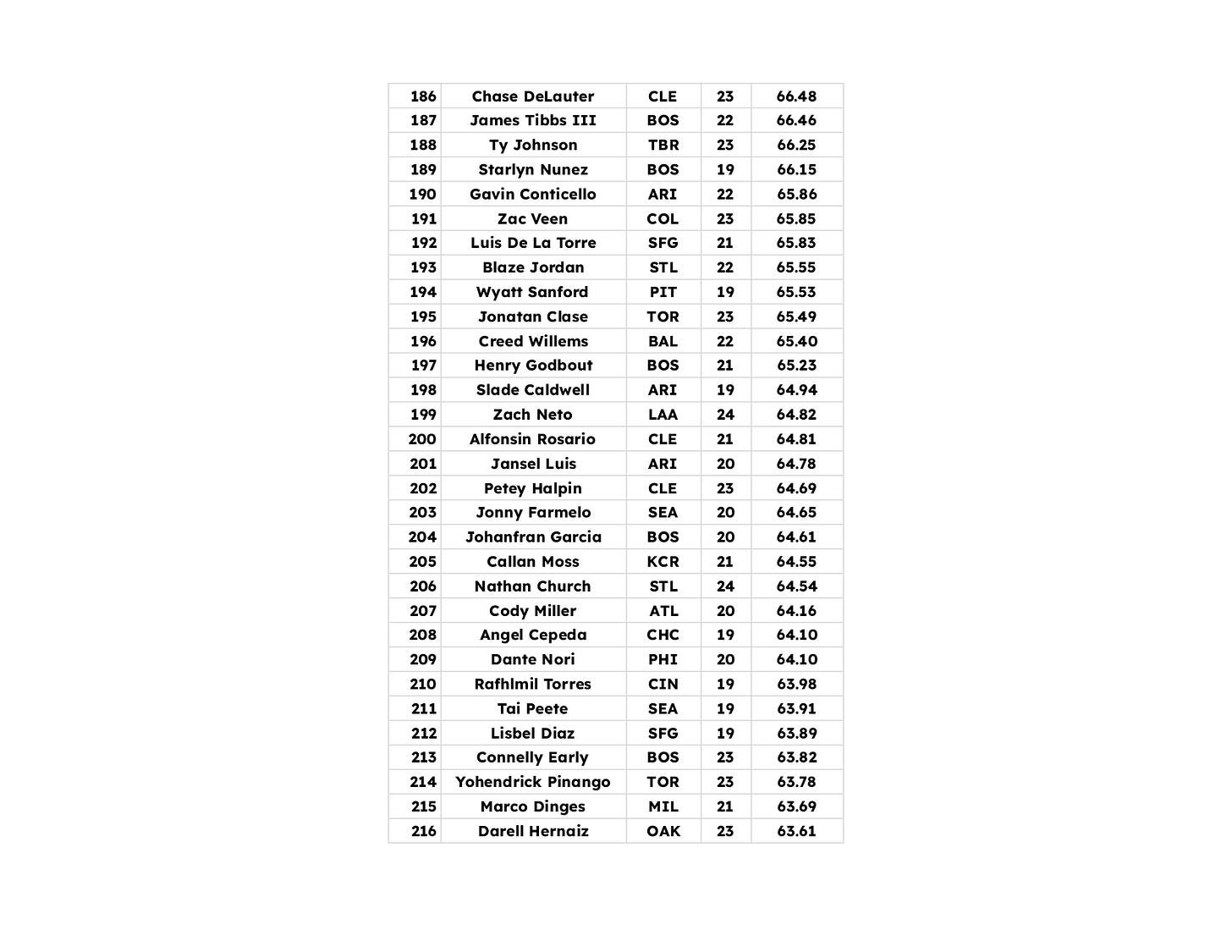 Here is the top 261 combined. This includes RP. I have not dinged them or taken them out of the total group so if you see some names you don’t know, they’re probably RP. Min 25 IP and min 50 PAs