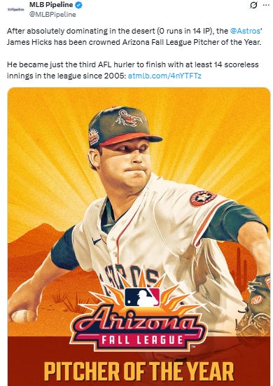 Any of you happen to see James go off in the AFL like he was the best pitcher there?