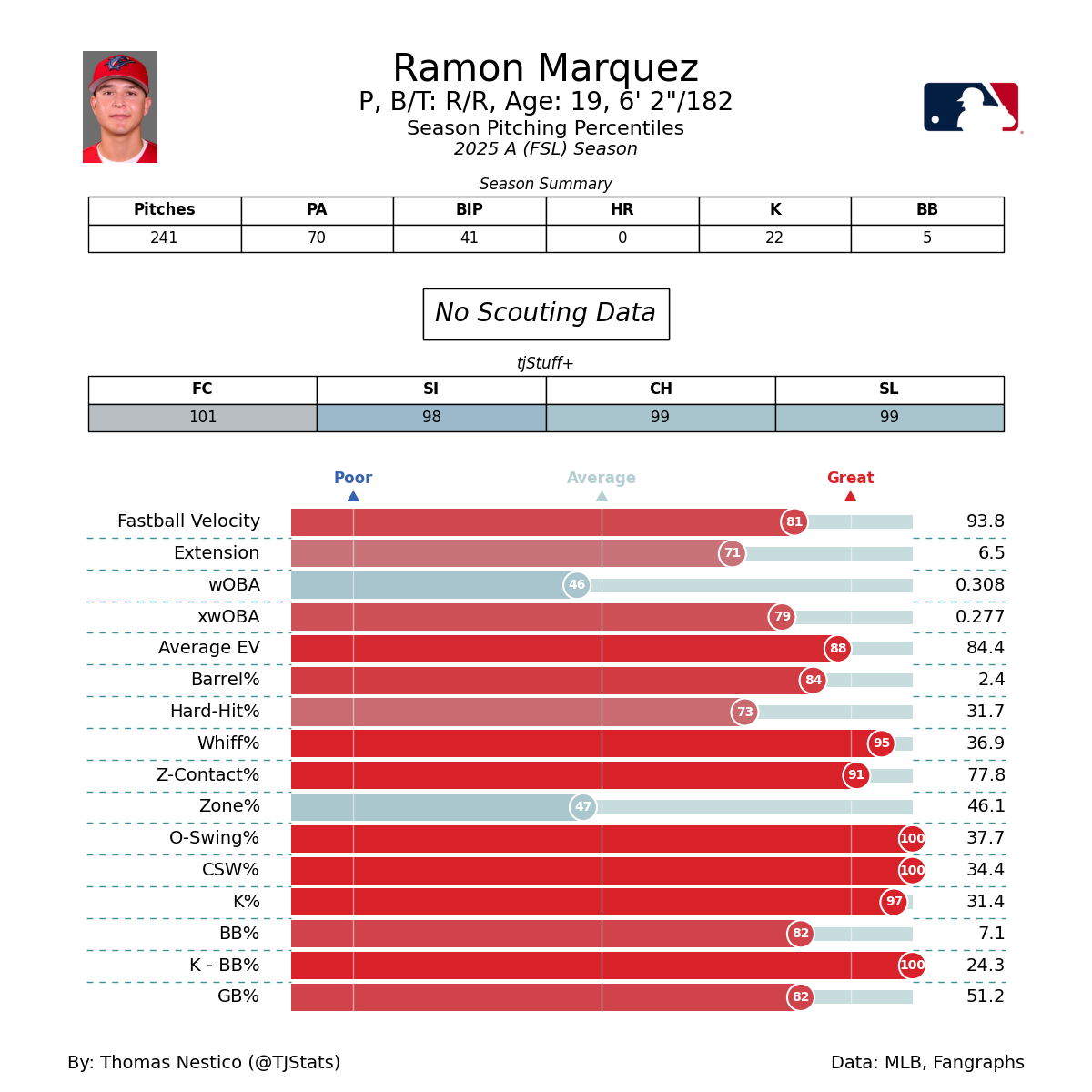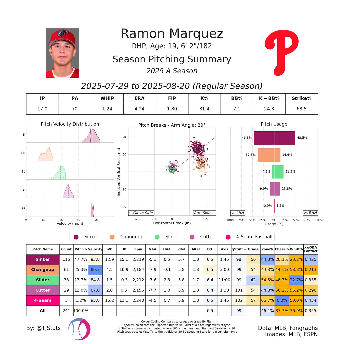 The Phillies also do a nice job with their player development, and they do a great job at the pro level as well. Cristopher Sanchez and Ranger Suarez went from interesting to rotational stalwarts since they arrived. There is a long way to go still, but this is a really interesting player the Phillies have. Ramon isn't the biggest guy, but he is 6'2". He could easily add some velo as he ages.