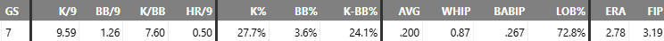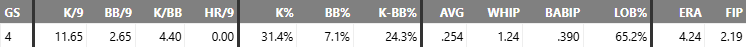 71% NH %, 13% SwStr - 69 pitches, 5.1 no hit innings, no runs, walked two, and struck out 7.