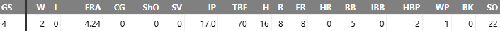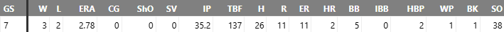 His outings were 2.2IP, 2.2 IP, 3.2IP, 2.2IP, and 3.1IP in his first 5.